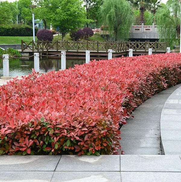而红叶石楠则像一位魔术师——新叶鲜红似火,老叶渐变为绿,定期修剪成波浪或球形,无需复杂养护即可呈现艺术造型。