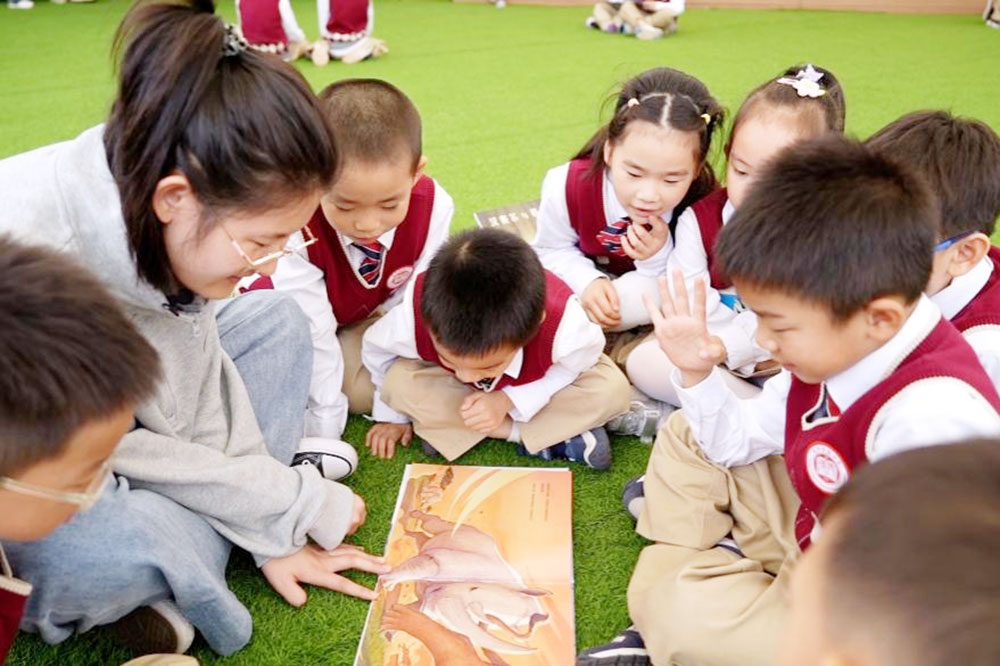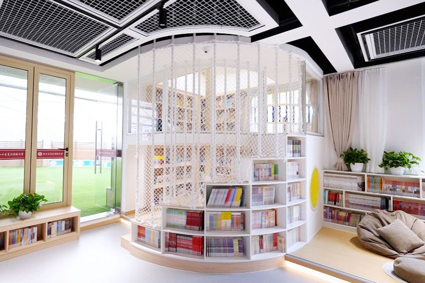 除此之外,学校在图书馆西侧的折叠门直通户外半露天绿茵场,让孩子们宛如置身公园,尽享“悦”读时光。