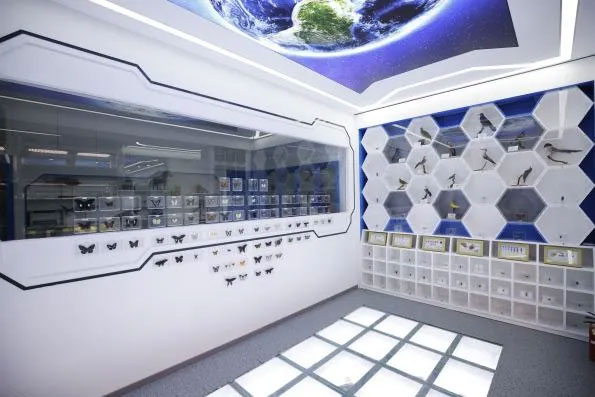 两区,即智能种植区、人与自然观察区:把学校教育与社会、自然结合起来,撷取有代表性的矿石、动植物标本;“人与自然”主题驱动,在“生态图书馆”里与“生命”对话。